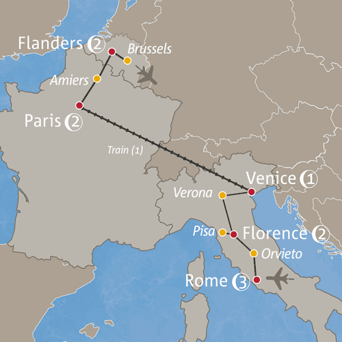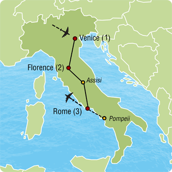 - Italy: Florence, Venice, Rome