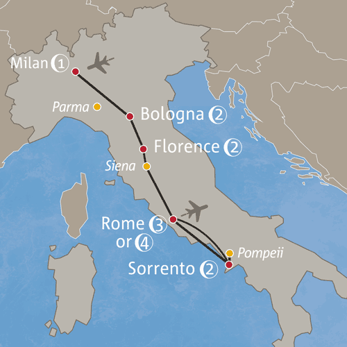 - Italy: Rome, Bologna, Milan, Florence, Sorrento